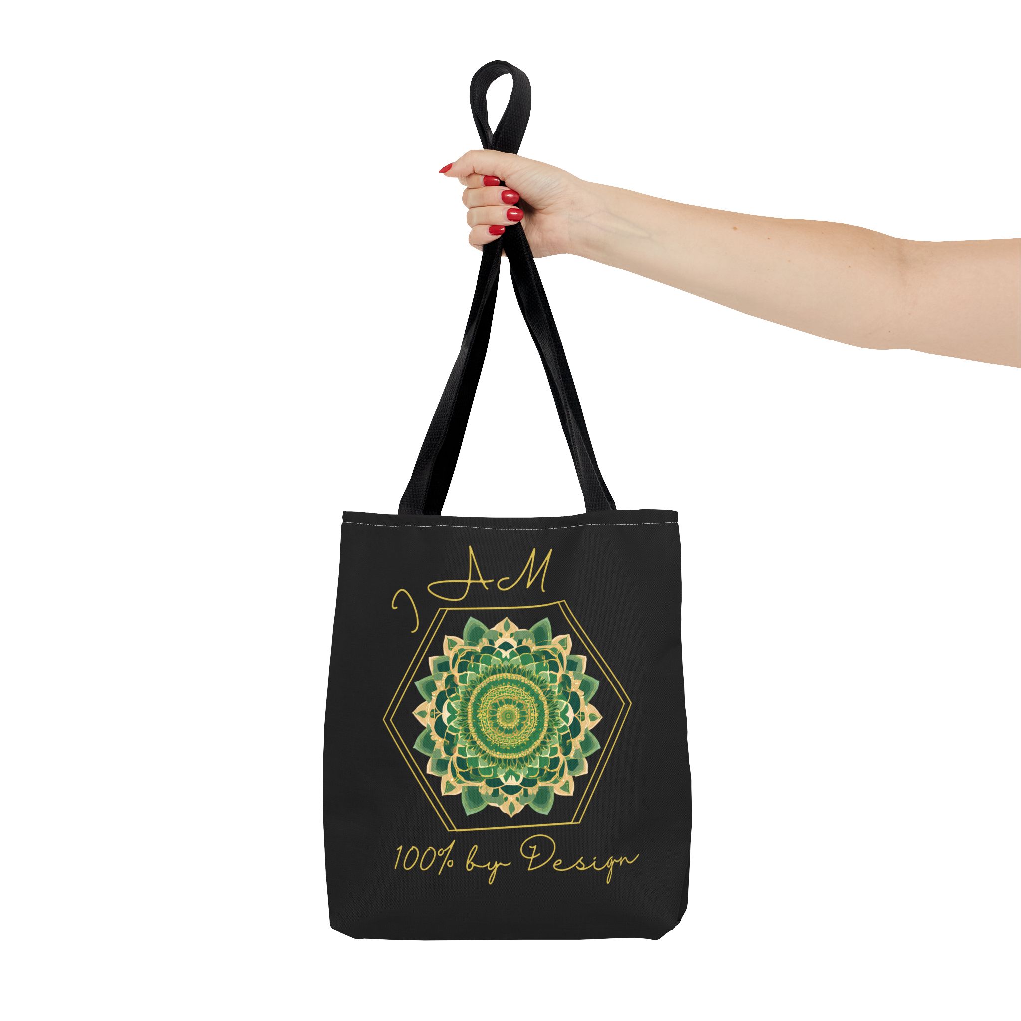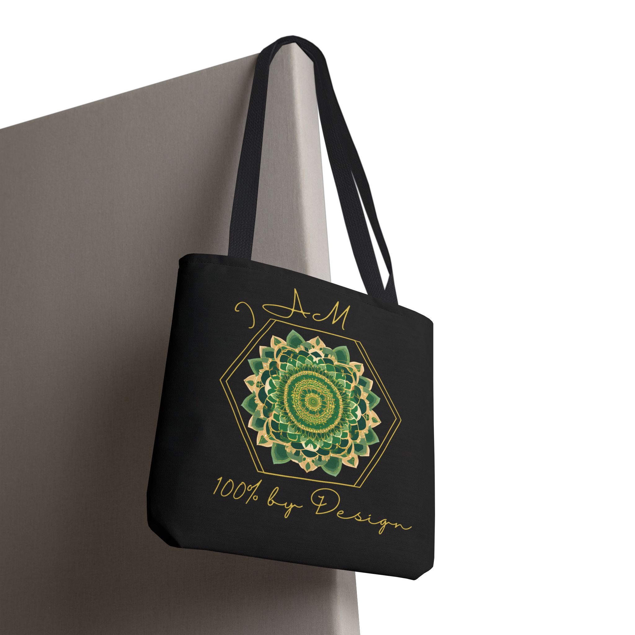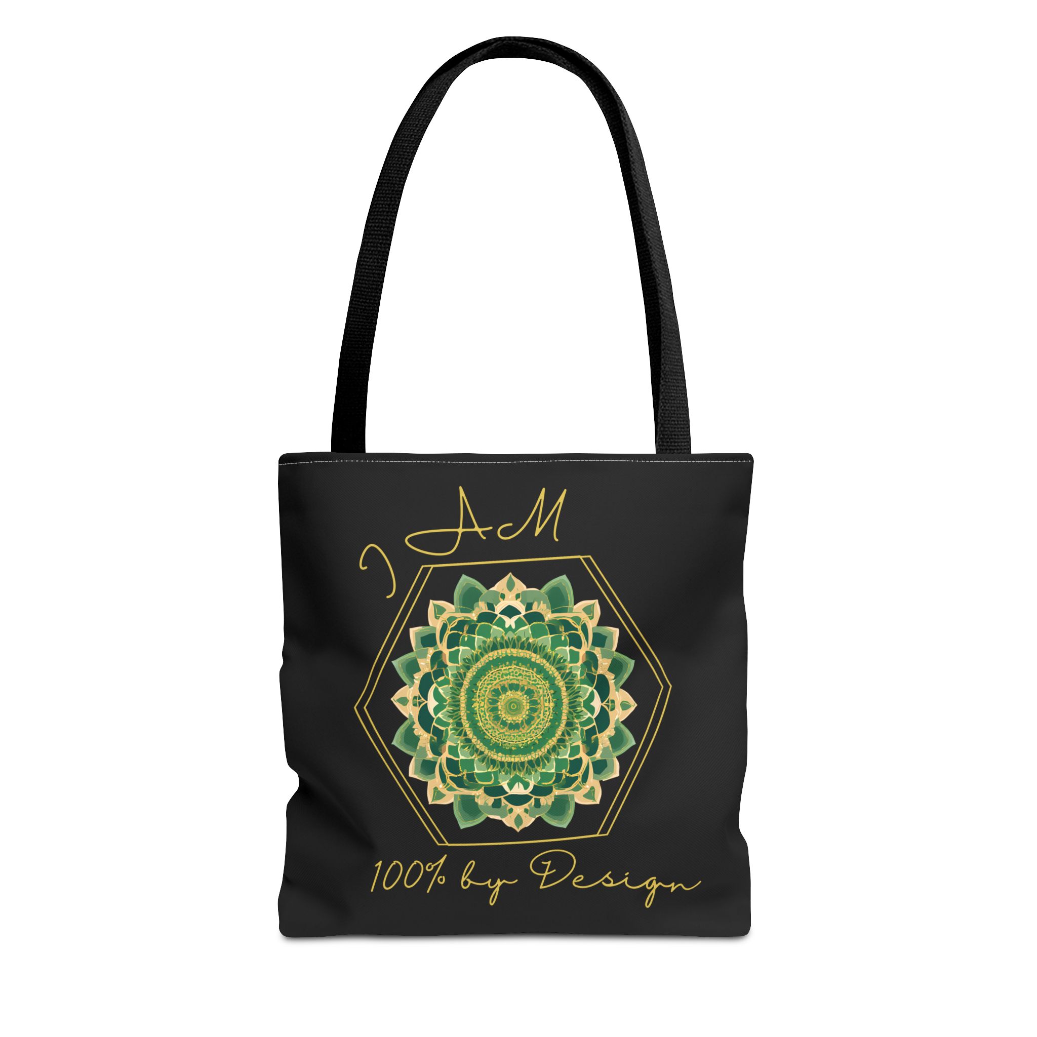 I AM 100% By Design - Mandala - Tote Bag - BLK - GRN (AOP)I AM 100% By Design – Mandala – Tote Bag – BLK – GRN (AOP)